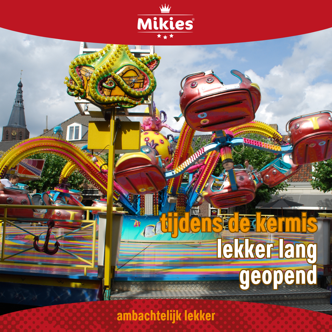 Boxtel – Komend weekend staat Kermis Boxtel weer voor de deur! En kermis betekent dat we extra & langer geopend zijn. Je leest hieronder onze openingstijden! Tijdens de kermis kun je ook gebruik maken van onze bezorgdienst (dagelijks van 16.00 uur tot 20.00 uur). Geef je je bestelling dan wel even digitaal aan ons door via Mijn.Mikies.nl?